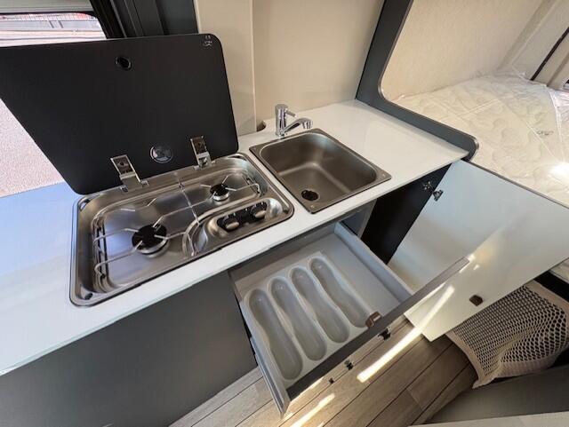 ÉQUIPEMENTS 25 EDITIONNouveaux graphismes extérieurs “25 EDITION” dédiés à l’occasion Cabine de couleur Expedition Grey Boîte de vitesses automatique Frein à main électrique Feux antibrouillard Pare-chocs peint avant dans la couleur de la carrosserie Skid Plate noir TPMS – Capteur de contrôle de la pression des pneus – Jantes alliage 16’’ bicolores Volant et Pommeau de vitesse en cuir Tableau de bord Techno Radio écran tactile de 9’’ Android Auto/Apple Car Play sans fil Caméra de recul Housses de siège Éclairage extérieur à LED Panneau de contrôle CP Plus Midi Heki lanterneau panoramique 70×50 cm Moustiquaire pour porte latérale Marche-pied électrique Stores plissés de la cabine Store extérieur Panneau solaire 200 W : 0 €