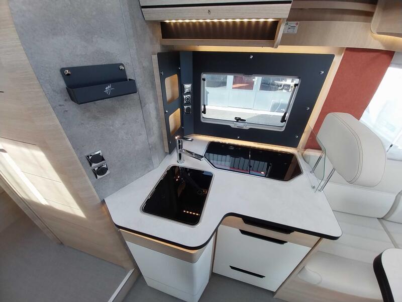 Pack Sélect série 6FCaméra de recul avec écran de contrôle intégré au tableau de bord, Station multimédia DAB PIONEER® avec écran 6,8'' et fonctions APPLE CAR PLAY/ANDROID AUTO, Commandes au volant pour radio, Peinture pare-chocs avant couleur carrosserie, Skid plate noire, Phares antibrouillard avant, Pneus all season 3PMSF, Traction+ avec Hill Descent Control (aide au maintien de la vitesse en descente), Stores pare-brise et baies cabine isothermes double plissés à cassette, Porte cellule à serrure 2 points avec baie fixe et poubelle intégrée, Moustiquaire de porte cellule, Inverseur de gaz automatique, 2e clef télécommandée (PLIP) : 4290 €