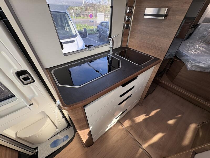 Options usineFiat 140 ch, Boite de vitesse automatique, 3,5 T - ( vs 140 ch BVM 3,5 T) + Truma Combi 6 EH (gaz + électrique) avec commande de chauffage CP PLUS + Moquette cellule et cabine + Lit permanent réglable en hauteur (≈20 cm) assisté par vérins électriques + Kit lino protecteur + Mobilier PALATINA + Sellerie ALICANTE : 6250 €