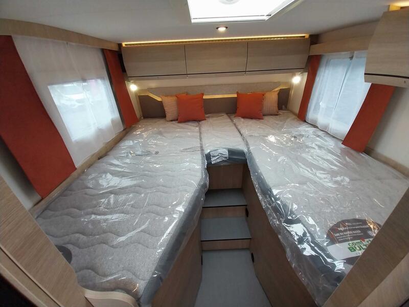 Dimensions couchages arrière : Lits jumeaux sur soute : 80 x 199 + 80 x 185cm