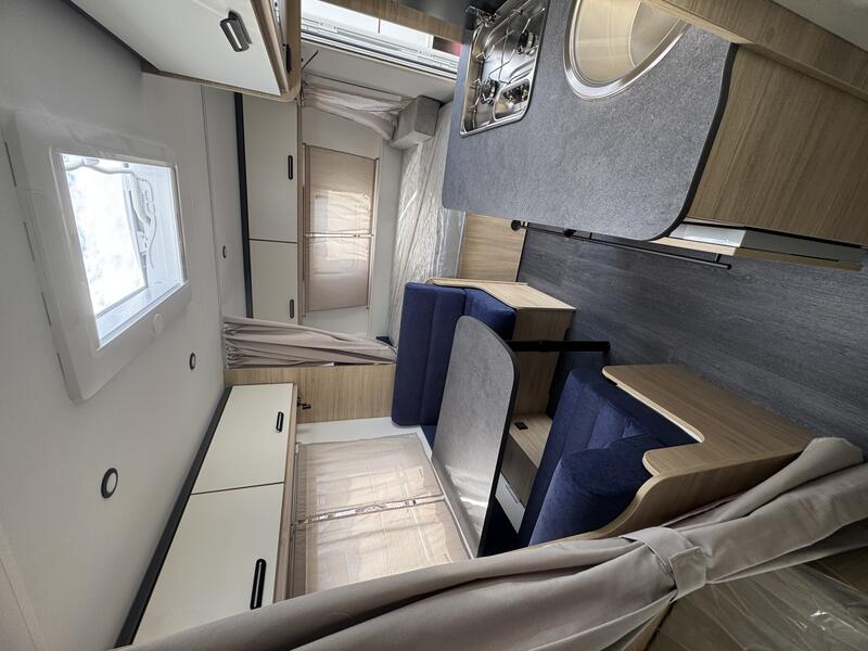 Option usinePACK SAFETY ( Anti-lacets AKS 3004 Amortisseurs roue de secours en acier vérins renforcés portillon extérieur latéral (100x40) + PACK SHOWER (Support douchette douchette rideau de douche réservoir d'eau 50L réservoir eaux usées 30L chauffe-eau 5L) + PACK COSY( Lanterneau panoramique (70x50) moustiquaire de porte spots de lecture leds supplémentaires TISSUS PIGNA pochette en tissus chambre parents pré-équipement batterie baie avant) : 3500 €