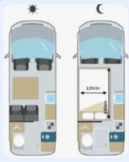 Dimensions couchages arrière : AR = 120x190 & AV = 128x205